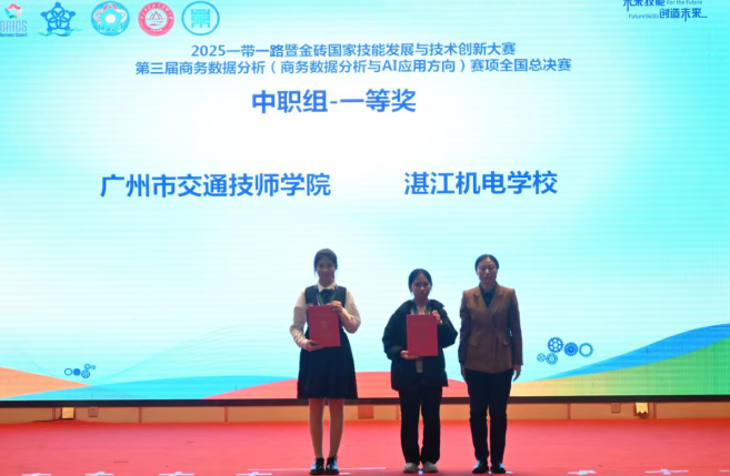 喜讯:学院荣获“一带一路暨金砖国家技能发展与技术创新大赛”总决赛一等奖 2025年10月26日,第三届“一带一路暨金砖国家技能发展与技术创新大赛”商务数据分析赛