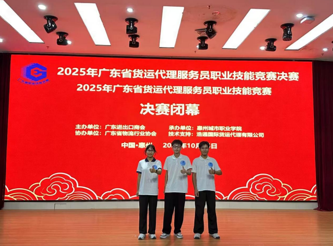 10月24日至25日,广东省货运代理服务员职业技能竞赛决赛战况激烈。本届竞赛以“技能连通全球,人才赋能湾区”为主题,吸引全省42家参赛单位近百名选手参与。我院黄河清、肖玉莹同学凭借在客户维护、航线设计、单证操作等核心技能模块的出色发挥,双双获二等奖(总排名第五、第七),岑梓渝同学获三等奖(总排名第八)。此佳绩离不开吴秋霞、康华滢、姚子钰、贾秀录、曾叶靖、刘洁老师组成的指导团队的悉心栽培与全程护航。