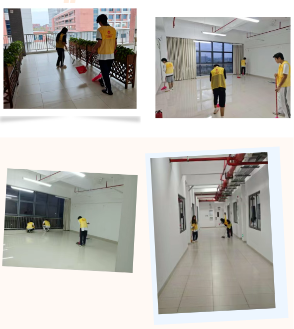 活动当天,青年志愿者们按照事先的分组,迅速投入到各自负责的工作中。在各楼层平台,志愿者们手持扫帚、抹布等工具,仔细清扫每一处角落,将堆积的落叶、纸屑等垃圾一一清理干净,让平台恢复了整洁的面貌。对于教室环境整理,他们更是一丝不苟,不仅认真擦拭黑板、课桌和门窗,还彻底清扫并拖洗地面,使得教室面貌焕然一新。