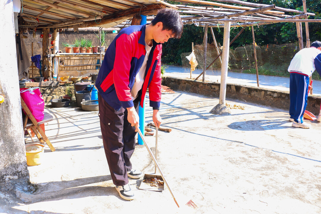 志愿者们来到山田村京山祠堂路的村民家中,开展了一系列温馨且有序的服务工作。志愿者们分工协作,有的为老人送上慰问品,与老人促膝长谈,细致询问其身体状况与生活需求;有的化身安全卫士,仔细排查老人家中的各类安全隐患;还有的主动拿起清洁工具,为老人打扫房屋、清理庭院。志愿者们不仅为独居老人送去了实实在在的生活用品,解决了其生活中的实际难题,更以真诚的陪伴和暖心的交流,为老人们带来了精神上的慰藉,让独居老人们深切感受到来自学院的关怀与温暖。