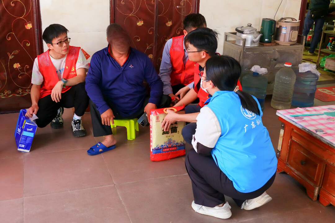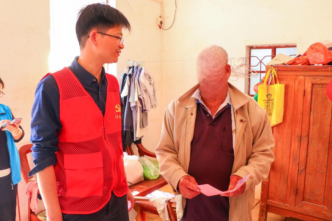 志愿者为老人送上慰问品、排查用电风险隐患和清扫庭院