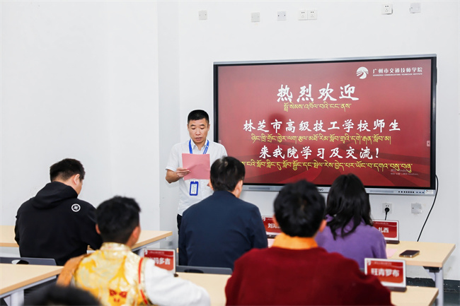 11月26日上午,广州市交通技师学院举行林芝市高级技工学校师生跟班学习开班仪式。学院副院长刘海波、行政办公室主任黄炳锋、汽车与能源产业系副主任谭佳庆、轨道与先进制造产业系副主任黄洛宁,重型车辆技术与轨道车辆技术项目教练何梓健老师、杨速林老师及选手代表,林芝市高级技工学校扎西老师及四位跟班学习的学生共同参加仪式。