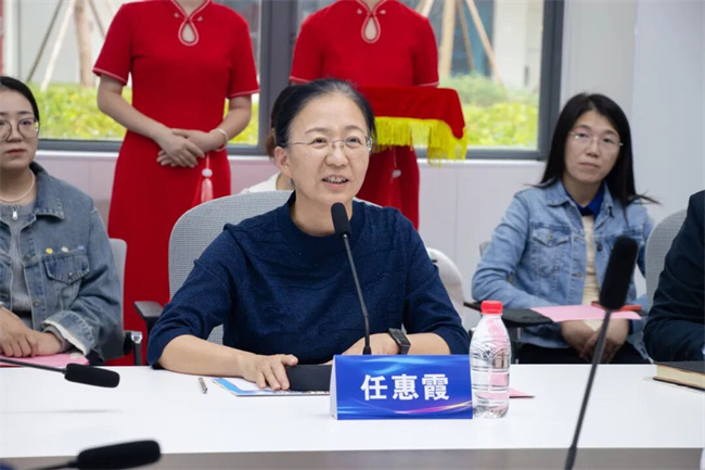 任惠霞书记致辞,介绍了学院的办学特色与专业布局。她强调,物流行业前景广阔,本次物流大师工作室的成立是深化产教融合、提升人才培养质量的关键举措。