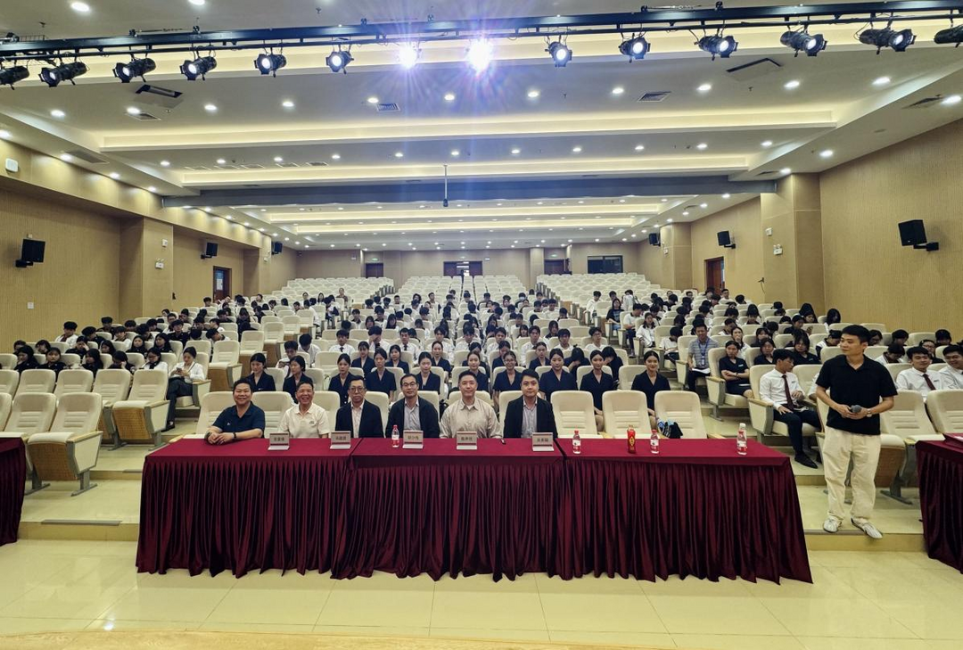 在互动环节,同学们积极提问,就工作内容、职业晋升、福利待遇等方面与企业代表进行了深入交流。企业代表们耐心解答,现场气氛十分活跃。宣讲会在热烈的掌声中圆满结束,双方领导和嘉宾合影留念,记录下这一重要时刻。
