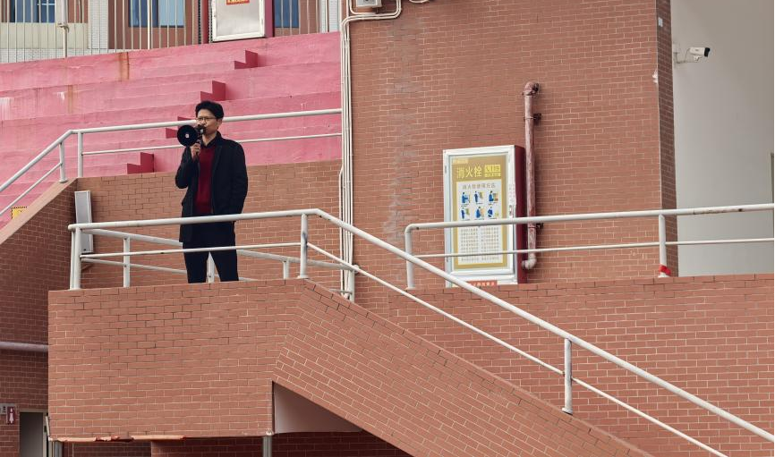 会议明确了1、2、3号疏散楼梯的分层包保责任制,逐一落实各楼梯口、楼层转角等关键位置的引导教师;细化了各班疏散至操场后的集结站位,绘制站位示意图,并安排学生志愿者协助引导,明确各班任课教师为集结清点第一责任人。会议重点强调了演练流程、安全须知与纪律要求,确保各项工作有人负责、有章可循、有序推进。