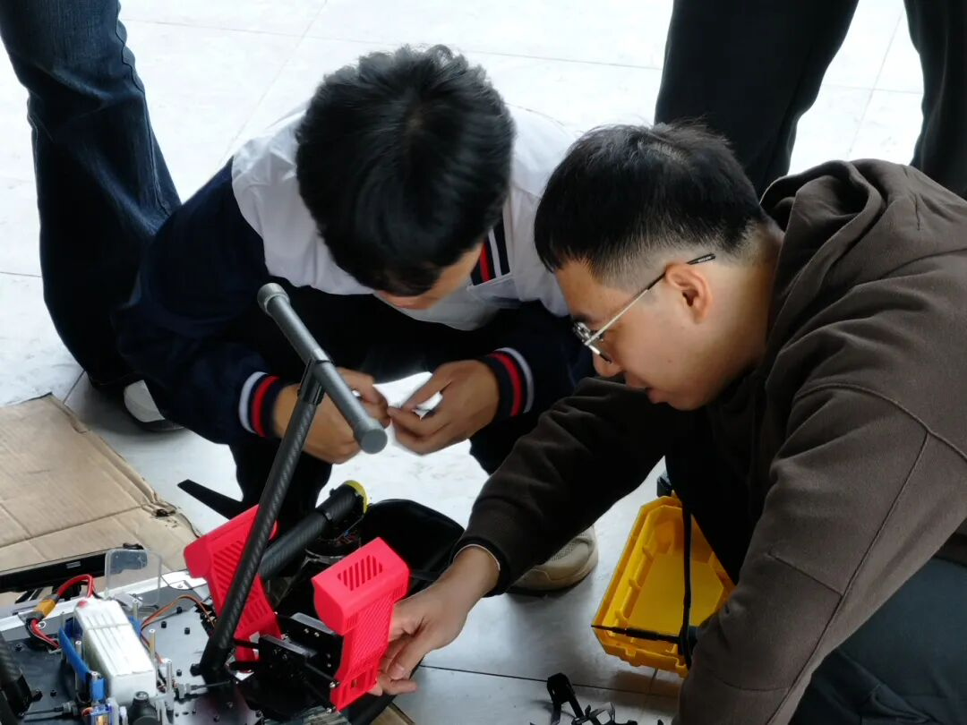 比赛现场,两支队伍的临场发挥同样亮眼。答辩环节中,面对评审专家围绕作品设计细节、技术落地性、创新价值提出的专业提问,队员们沉着冷静、从容应答,既清晰阐释了机械爪的核心设计思路与创新亮点,又结合备赛打磨经验,分享了方案优化的思考过程,展现出扎实的专业积累;飞行竞技环节,队员们默契配合,高效完成无人机与机械爪的调试校准,全程稳定操控设备,顺利完成所有既定飞行考核任务。