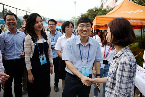 刘建卫副院长致小商品交易会开幕辞。他说,通过交易平台,学生能够深入到经济活动的整个业务操作流程,全方位、多维度地展示职业素质与专业技能,践行“做中教,做中学”的理念。团委何腾飞书记宣布会展协会成立。随后,会展协会指导老师康华滢带领学生会员介绍成立会展协会的初衷,希望为交通学子搭建一个学习交流、展示自我的舞台,把所学的会展知识与实践活动结合起来。物流与商贸产业系曾玉霞副主任转动大转盘并为幸运商家颁发礼品。