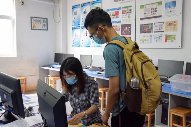 先查看分班名册,再到班主任处报到。办理手续时热情、认真、亲切的老师和师兄师姐感染着新同学们,也让新同学们感受到来自学院的温暖。