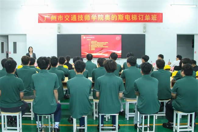 5月8日,广州市交通技师学院与奥的斯电梯有限公司第二期订单班开班仪式在科教城校区顺利举行。奥的斯电梯有限公司广州分公司服务总经理李芳云等相关负责人,广州市交通技师学院副院长伊晓浏,校企合作办公室主任李栋,轨道与先进制造产业系主任郭军平、副主任詹永瑞、黄洛宁等教师代表以及订单班24名学生齐聚一堂,共同见证这一重要时刻。
