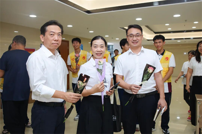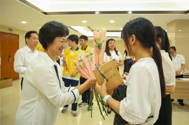 会前,学院领导与学生代表为全体教师献上节日鲜花,向辛勤耕耘的教职员工致以诚挚的问候和美好的祝福。一束束芬芳四溢的鲜花传递着浓浓的尊师之情,现场洋溢着温暖和谐、崇德尚教的浓厚氛围。