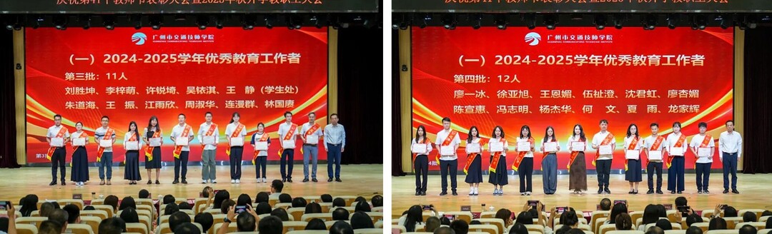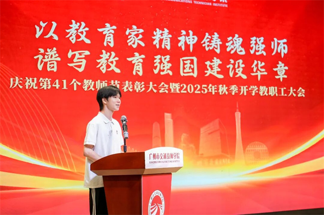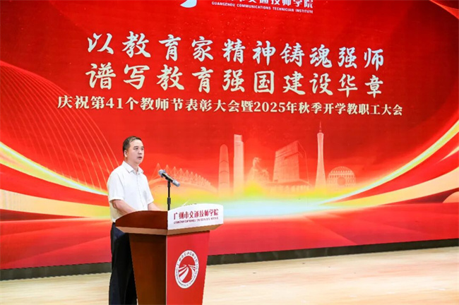 此次大会既是一次庆祝节日、表彰先进的荣誉盛典,也是一次统一思想、凝聚力量的动员大会。广州市交通技师学院全体教职工将以教育家精神为引领,坚守育人初心,勇担时代使命,以更加饱满的热情、更加务实的作风,共同谱写教育强国建设的壮丽华章。