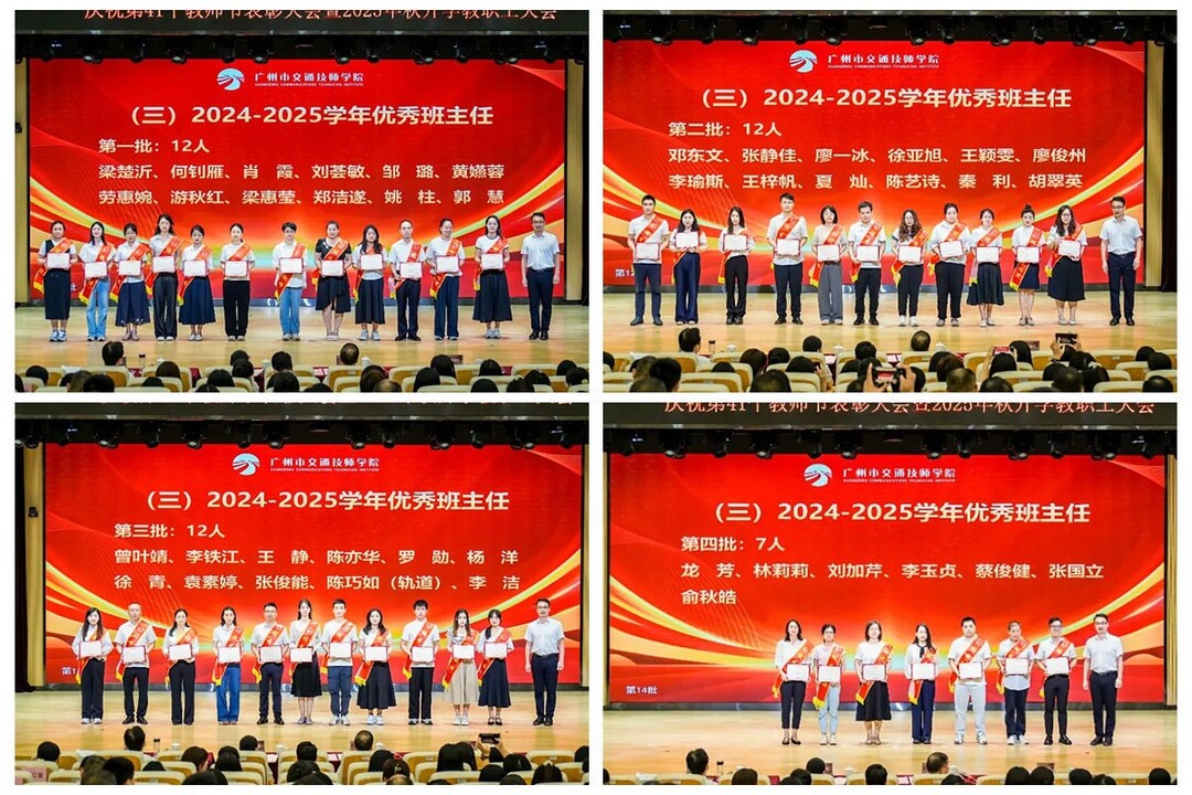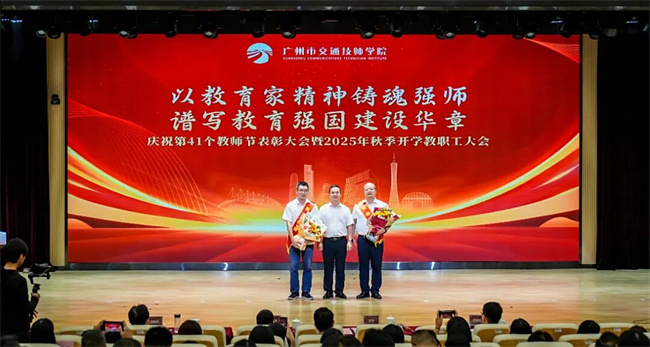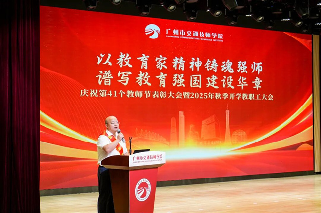 金秋九月,丹桂飘香;桃李芬芳,感念师恩。9月10日,广州市交通技师学院召开庆祝第41个教师节表彰大会暨2025年秋季开学教职工大会。学院领导与全体教职工齐聚一堂,共同庆祝属于教育工作者的光荣节日