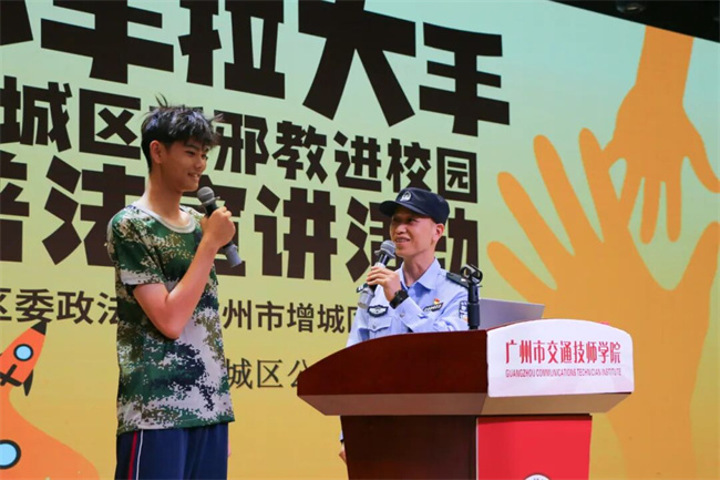 本次讲座由广州市增城区公安分局平安宣讲团李警官和梁警官讲授。李警官向同学们普及了传销和邪教相关知识,讲解了传销和邪教的概念和特征,教导同学们在遇到传销或邪教组织做宣传时应做到“不听、不信、不传”,及时向警方提供线索;梁警官围绕电信诈骗概念、特征、手段等方面,通过实际案例和现场学生互动等形式,为同学们上了一场精彩生动的反诈教育课,她告诫同学们要擦亮双眼,识破“刷单”“私下交易”“屏幕共享”等诈骗手段。现场同学们踊跃上台与警官深入交流,会场气氛十分活跃。