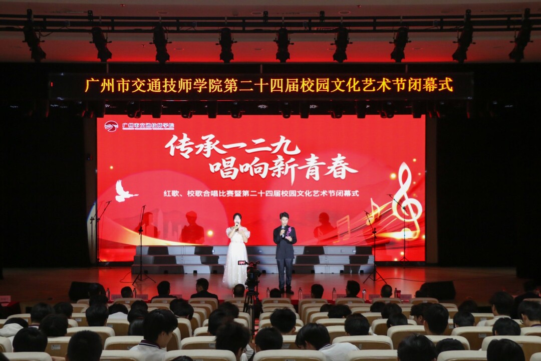 12月23日,广州市交通技师学院“传承'一二九'精神,唱响新青春”红歌、校歌合唱比赛暨第二十四届校园文化艺术节闭幕式在科教城校区B2报告厅圆满举行。学院领导、艺术节组委会全体委员、中层干部及班主任共同出席了活动。