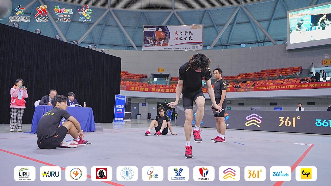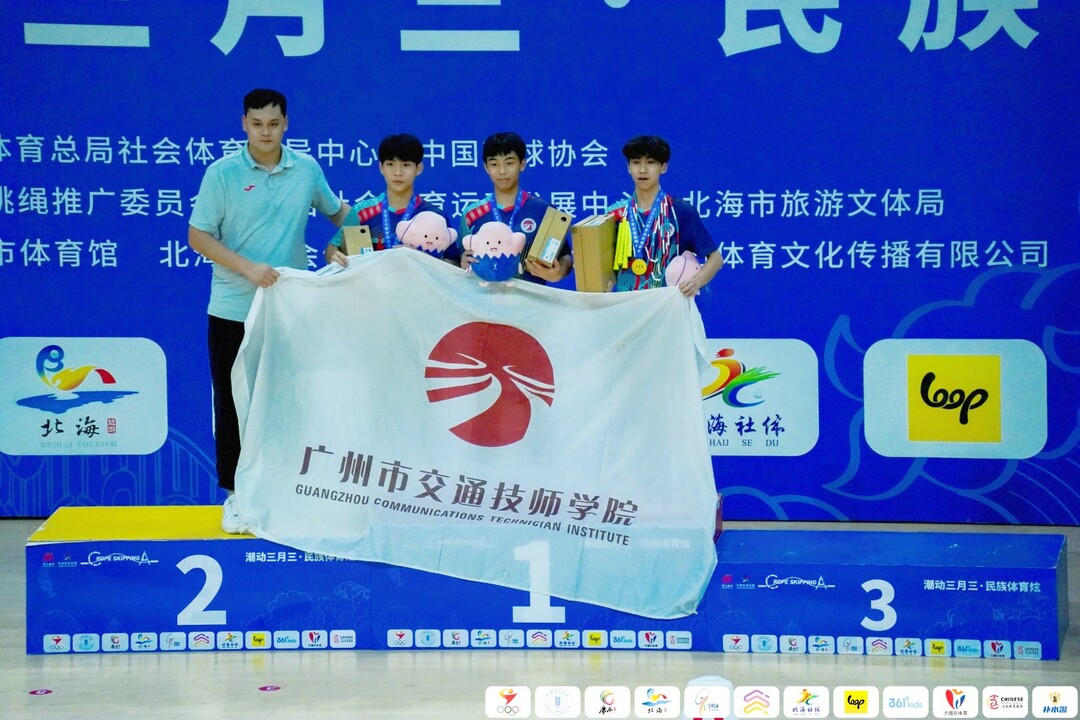 2024年全国跳绳联赛(广西北海站),学院学生陈汉孝、李澎熙、吴劲豪获得30秒交互绳速度争霸赛冠军