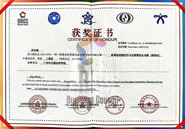 交通师生在2025一带一路暨金砖国家技能发展与技术创新大赛——首届短视频创作与运营赛项国际总决赛斩获佳绩