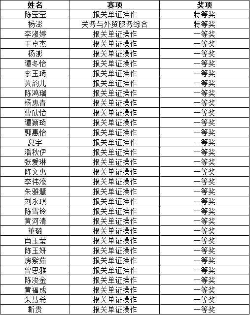 上述赛项内容涵盖报关单证制作、关务流程管控、外贸服务全流程等方面,对参赛选手的专业素养与实操能力要求极高。学院学子一举斩获两项特等奖,不仅有力佐证了师生的专业实力,更标志着学院在关务与外贸服务领域的人才培养质量已跻身全国职业院校先进水平。