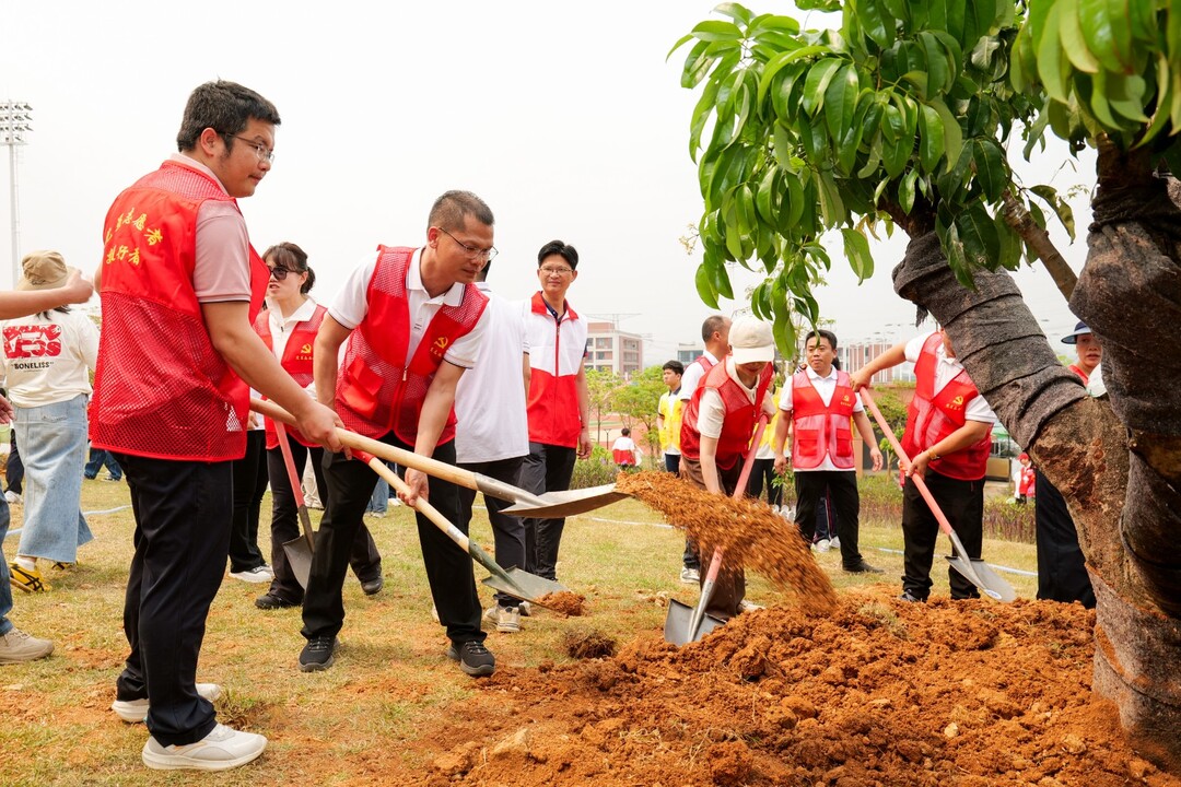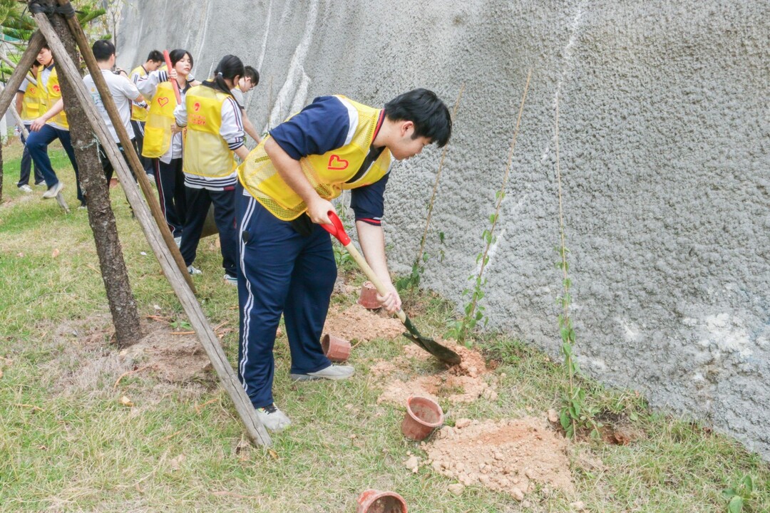一株新苗,一锹厚土,一瓢清水,种下的是希望,承载的是未来。此次活动不仅为校园增添新绿,更让生态文明理念在劳动实践中扎根。未来,学院将持续以党建为引领,深化生态教育,推动“绿美校园”与人才培养深度融合,为“绿美广东”贡献交通力量。期待来年荔园成荫炮仗花红,共绘人与自然和谐共生的美好画卷!