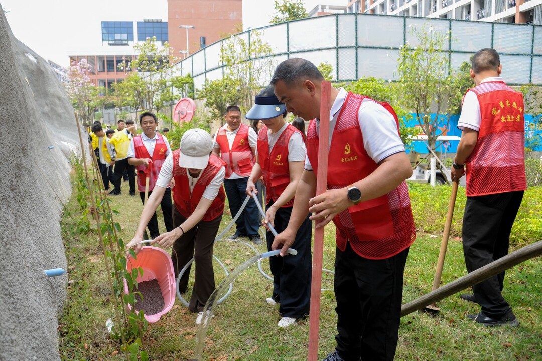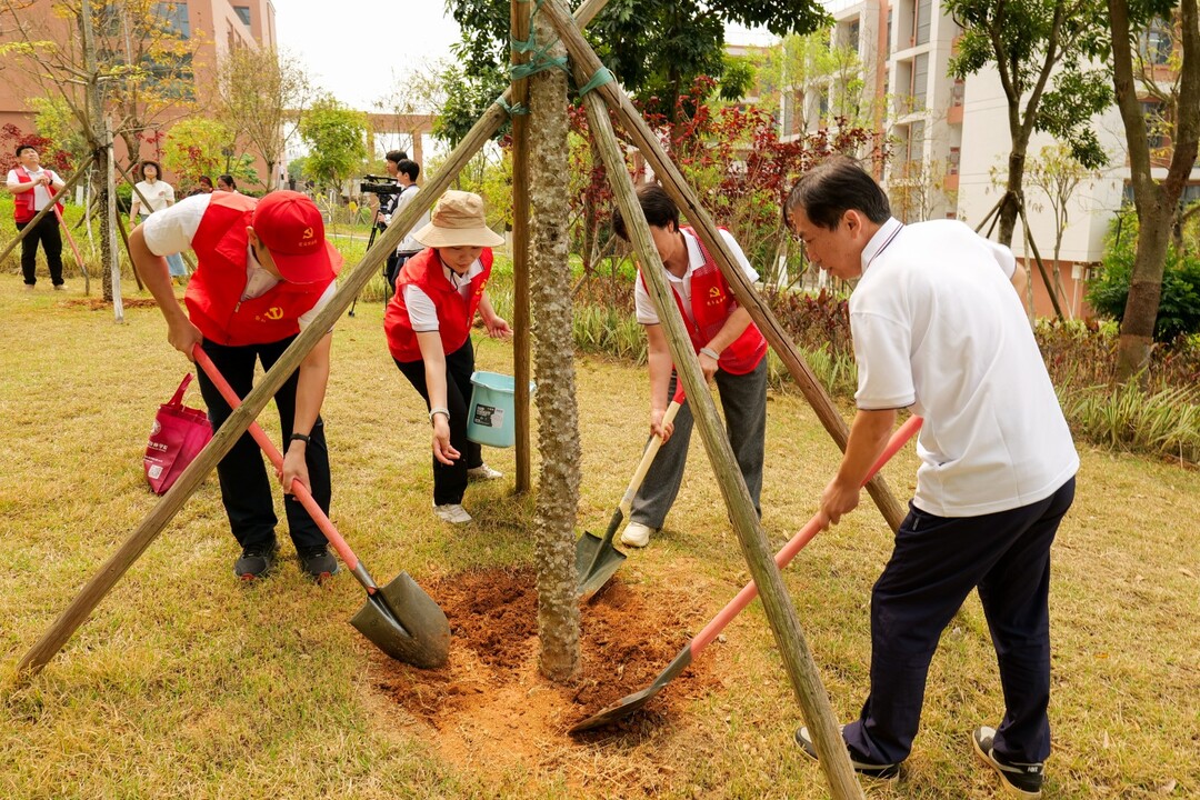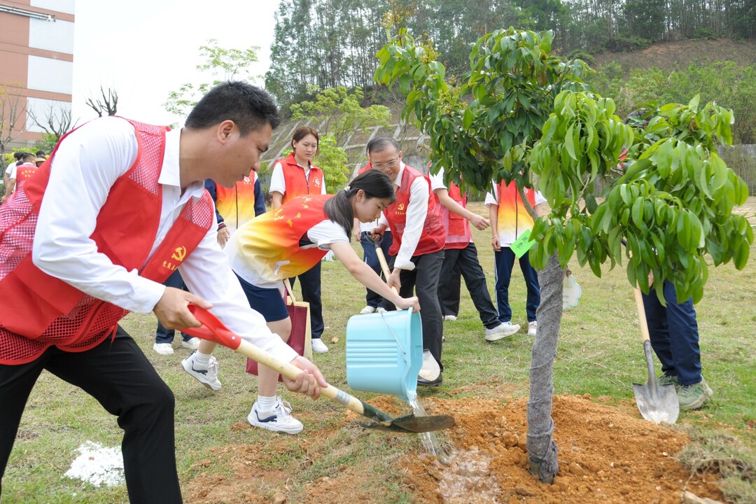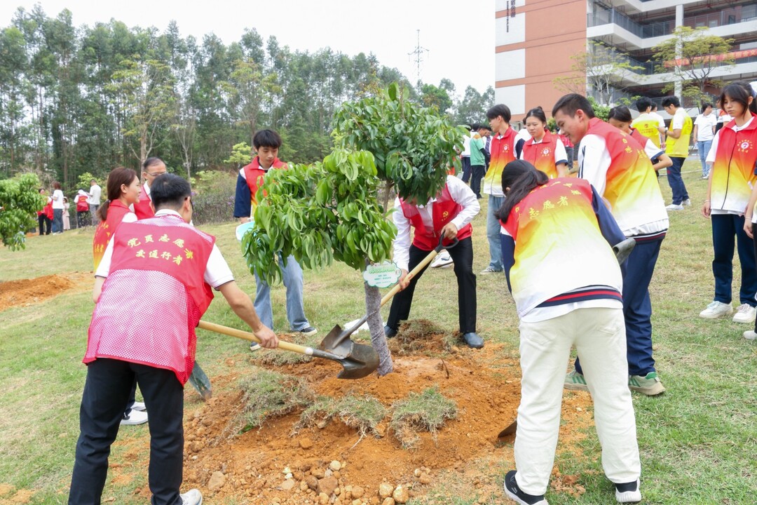 学院党委副书记、院长梁登为活动致辞,他指出,建设绿美校园,不仅是美化环境、提升品质的现实需要,更是以环境育人、以文化润心,培育担当民族复兴大任时代新人的长远之举。希望全体师生:一是提高站位,做生态文明的坚定传播者,将生态文明教育融入教育教学全过程;二是躬身实践,做绿美校园的主动建设者,精心管护、长久守护,确保“栽一棵、活一棵、成一片”;三是厚植情怀,做匠心育人征程的奋力开拓者,将绿色理念与工匠精神融入育人全过程,以青春之我助力绿美广东。