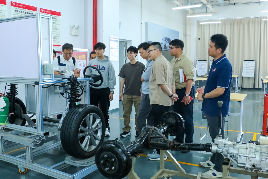 在座谈交流环节,双方围绕第48届世界技能大赛轨道车辆技术赛项的备赛经验、轨道交通技术创新以及粤港合作机制等议题深入交换意见。来宾对学院的专业师资力量与先进设备条件给予高度评价,并表达了进一步深化合作的意向。